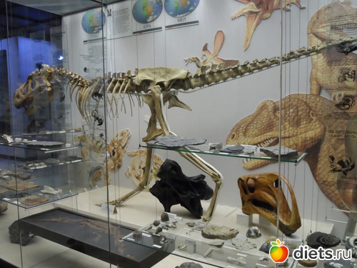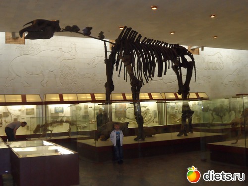 В последний день нашего пребывания в Москве мы с утра сдали вещи в камеру хранения на вокзале и отправились в Палеонтологический музей. Собственно говоря, это была "основная" цель нашего путешествия, т.к. у сына сейчас как раз "период динозавров" и я уже без проблем отличаю трицератопса от тарбозавра (он же тиранозавр) и всяких других гадов. Располагается сей музей в палеонтологическом институте, поэтому размерами, особо, не впечатлил. Ещё немного разочаровало то, что почти все "кости" не настоящие, а сделанные из тончайшего пластика. Но, в целом, понравилось.