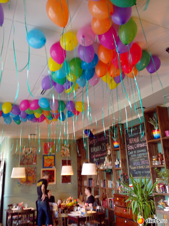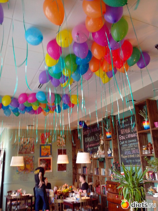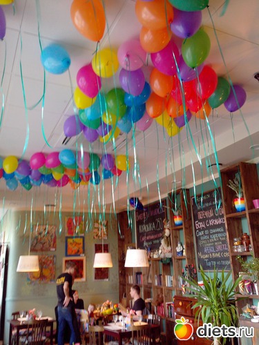 Весь потолок был в разноцветных воздушных шариках!