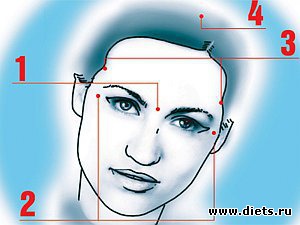 Точка № 4. Эта точка находится не на лице, а на голове. Нужно провести воображаемую (а можно и просто отмерить ниткой или ленточкой) линию от уха до уха.