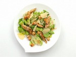 2. Сделать соус «Цезарь»: взбить в блендере 1 яйцо, чайную ложку дижонской горчицы, зубчик чеснока, немного вустерширского соуса, сок половины лимона и 4 анчоуса; продолжая взбивать, медленно добавить 150 грамм оливкового масла и 40 грамм тертого пармезана.