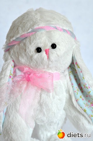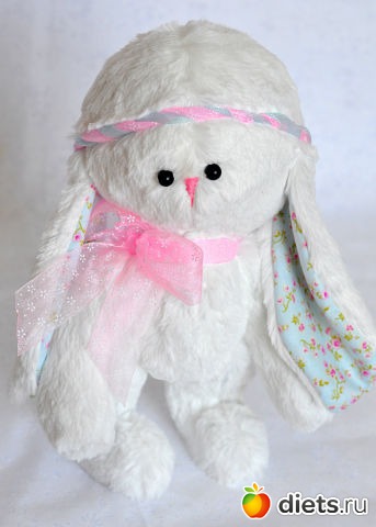 Милая, нежная... На ощупь очень нежная! Мех бесподобной мягкости! Такую заюшку и из рук выпускать не хочется! Вполне может быть игрушкой - опасных деталей нет (глазки пришиты крепко)!