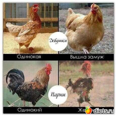 Прикольно. Только с курами не согласна. Женатые, наоборот, поправляются.
