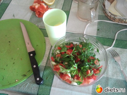 Я-таки приготовила салатик снова) раз уж белково-овощной день) Вот как оно все мило) Лимонным соком заправила)