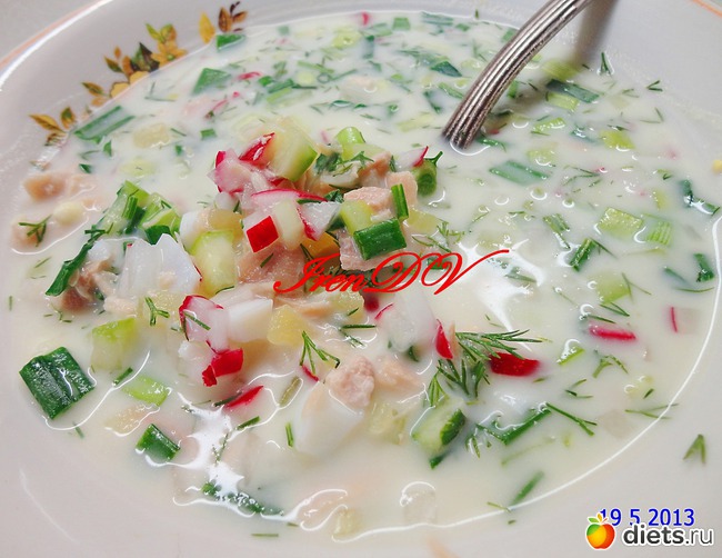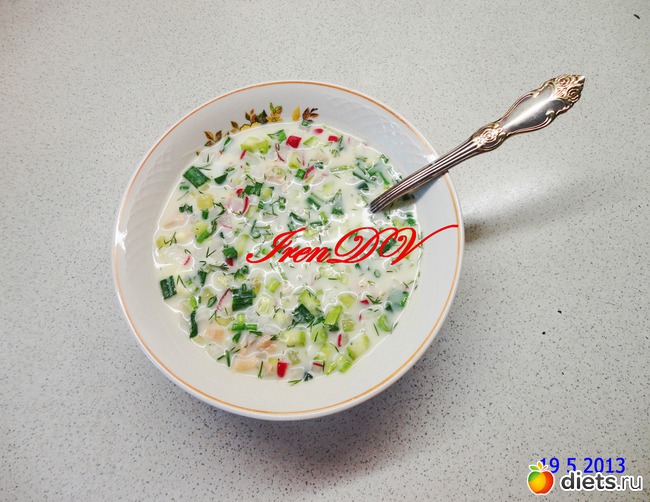 От приготовления творога у меня осталось два литра сыворотки, решила я сделать с нею вкусную окрошку!
