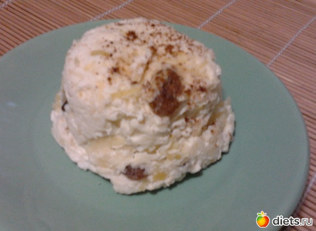 Вам потребуется: Творог (не зернистый) — 180-200 г Яблоко (большое, сладкое) — 1 шт (яблоко можно заменить любым другим фруктом на ваш вкус) Яйцо — 1 шт По желанию можно добавить изюм Как готовить: 1. Яблоко натереть на тёрке. Добавить творог и яйцо. 2. Всё перемешать вилкой. 3. Разложить по формочкам, пригодным для микроволновки. Суфле при выпечке не поднимается, можно заполнять формочки до самого верха. 4. Поставить в микроволновку на 5 минут. Проверить готовность, потрогав верх десерта - если на пальце останется след от творога, выпекать ещё пару минут. 5. При подаче можно посыпать корицей. Приятного аппетита!