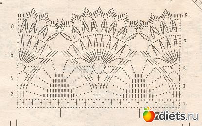 я перерыла весь инет в поисках подходящей каймы, чтобы сочеталось с основным узором платья (была задача выровнять край платья, и довести до нужной длины)... в итоге не нашла, только идея возникла, благодаря этой схеме