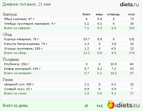 ну вот второй день подошел к концу. в принципе, я не голодна и очень вкусно кушаю, но мне кажется, что нужно стараться употреблять более калорийные блюда. хотя бы дотягивать до уровня 900-1000 ккал.
