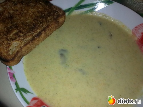 8. Украшаем зеленью, добавляем в суп-пюре обжаренные грибочки и наслаждаемся легким и диетическим супом. Подавать рекомендуется с поджаренным хлебом.