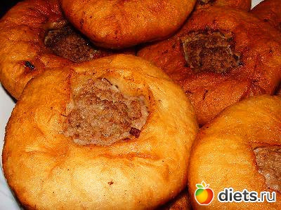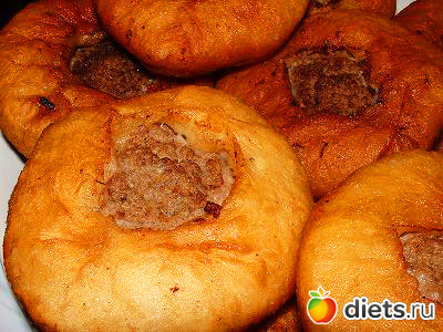 Тесто раскатать в лепешки по 50 грамм. В середину лепешки положить сырой фарш весом 35 г и примять.