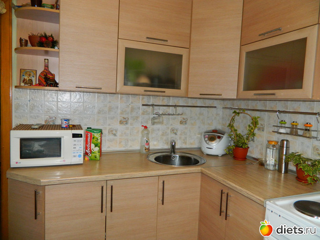 Я бы переставила микроволновку, а на ее место поставила мультиварку, т.к. по моему мнению ей не место возле раковины, но это мое мнение
