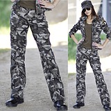 Камуфляжные штаны, майка спортивная, поверх - джинсовая рубаха с закатанными рукавами, велоочки от солнца и рюкзак сына ))