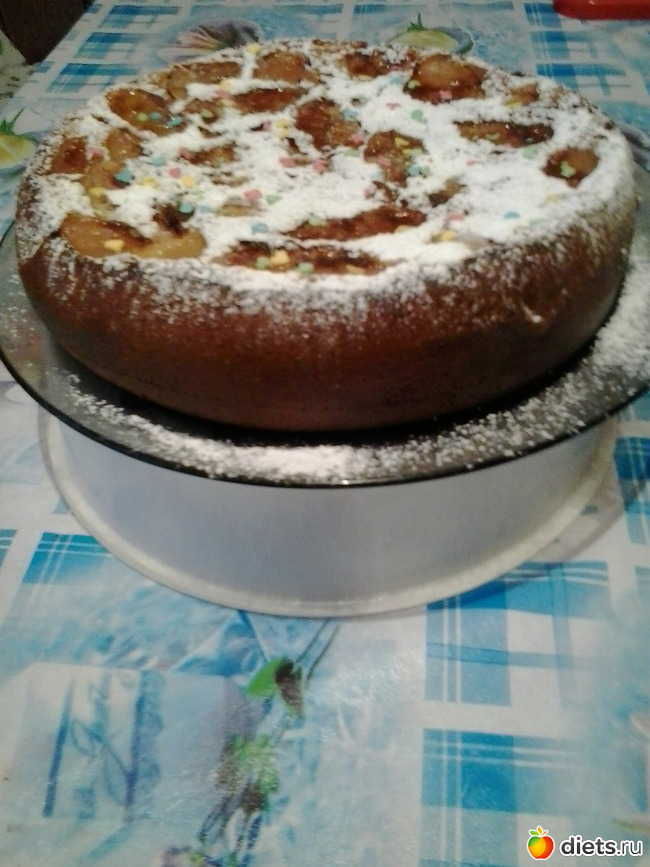 Соединить кефир и овсяные хлопья, перемешатью. Всыпать сахар и ванилин, снова перемешать. Вбить в эту массу яйца, перемешать. Можно миксером все взбить до однородности. Вводим муку и разрыхлитель. Снова взбить. Яблоки обработать, можно очистить кожицу. Чашу МВ смазать любым маслом, вылить тесто, сверху яблоки. Выпекала 2 часа в Поларисе (но у каждой МВ свой режим выпечки). ДОстала, перевернула и еще минут 15, чтобы яблочки подрумянились. Дать остыть и можно украсить сахарной пудрой.