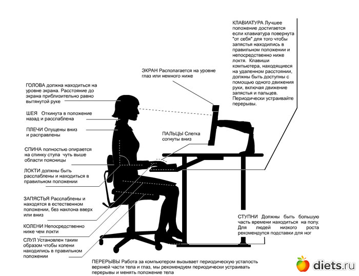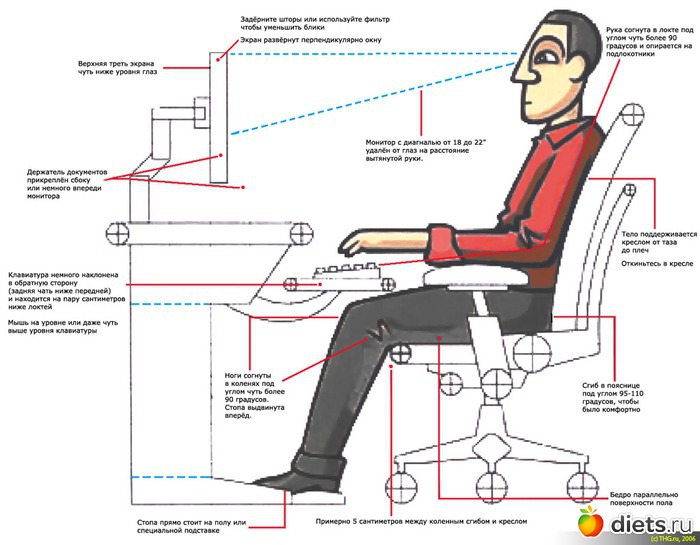 Первая запись в группе посвящается им - нашим компьютерам. Работа за компьютером опасна статическим положением тела, тем, что наши глазки не мигают, гиподинамия, неправильная поза. На фото хорошо видно как необходимо сидеть. Пошла подкручу стул повыше. Читать полностью