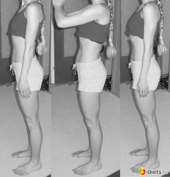 Три фото в профиль. На первой и второй я не втягиваю живот, на последней немного втягиваю:
