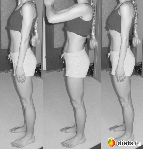 А сегодня у нас в программе только факты. Вчера я сделала пару фотографий для того, чтобы посмотреть на себя повнимательнее и определить, куда мне двигаться дальше. Не знаю почему, но в зеркале я себя вижу совсем по-другому, поэтому более-менее объективно оценить свой внешний вид мне помогают только фотографии. Так что не так давно я решила перед какими-то изменениями в своей программе тренировок делать пару снимков в одних и тех же позах. Эти фото призваны ещё и помогать оценить, что дала мне предыдущая программа. В общем-то, ничего особенного во всём этом нет - практически то же самое, что всем известная рубрика "До и После", только результаты совсем скромные