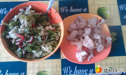 Обед - капуста, салат, грудка на пару