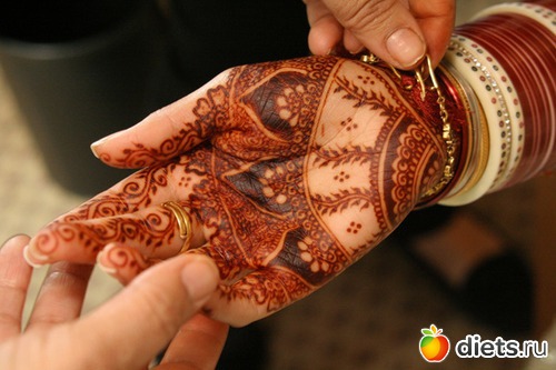 Помимио этого, мехенди или рисунки хной на теле полностью безболезненны и не наносят вреда коже. Это поверхностный рисунок, который не травмирует кожу и исчезает с полным обновлением эпидермиса, который происходит примерно в течении 25-30 дней, в зависимости от особенностей организма. Считается также, что процедура нанесения мехенди не просто безболезненна, она благотворно влияет на кожу, благодаря целебным свойствам хны, которые использовались еще в Мессапотамии.