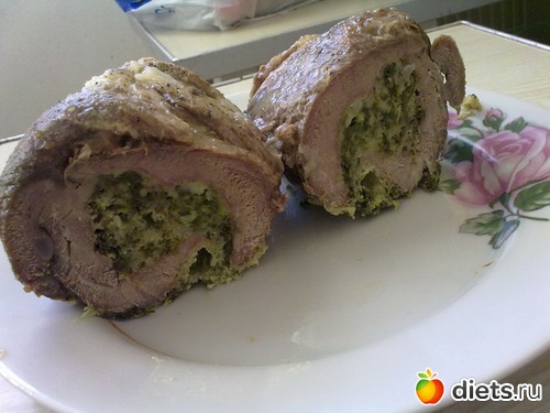 Девочки с diets.ru, вы - прелесть! Благодаря вам, я вчера вот такой рулетик забацала вместо колбасы химической из магазина. Его состав: свинина, шпинат, сыр, чеснок, соль, перец черный, паприка и лавровый лист.