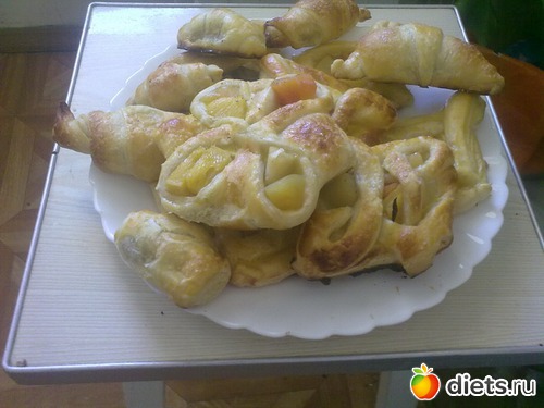 16.00 мы с мужем стали печь слойки (с консервированными ананасами, папаей, с бананами, с вареной сгущенкой и с корицей)... Ох, скорей бы утро! Надеюсь, что муж мне что-нибудь оставит.