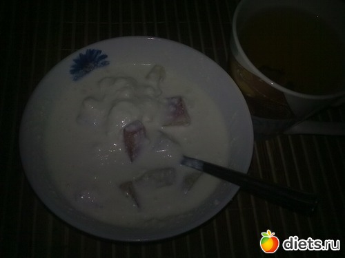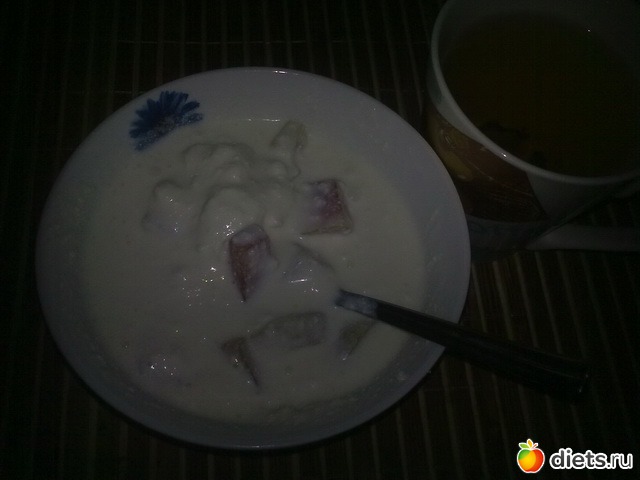 всяких разных. А зеленый чай в 9.00 уже пила с овсяным печеньицем, рафаэлками и бутиком с моим рулетиком. - Это был завтрак.