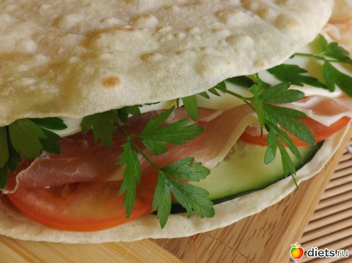 и побаловала себя вот таким бутербродиком с пармской ветчиной, сыром, помидором и огурцом