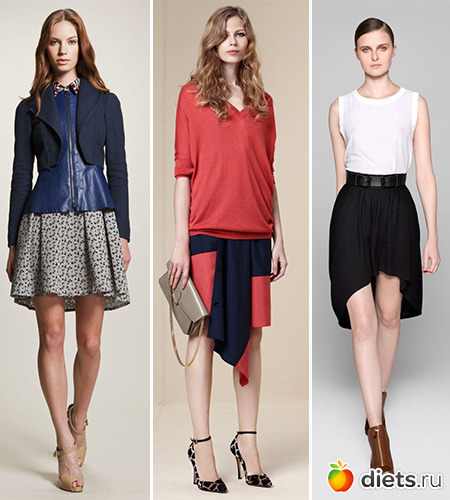 Летом, как никогда, хочется привнести в свой образ чуточку новизны и свежих ноток. Именно для такого случая модные бренды разработали массу асимметричных новинок. К примеру, Sachin + Babi и A.L.C предлагают остановить свой выбор на миди-юбках, укороченных спереди и удлиненных сзади. А вот Derek Lam решил порадовать своих поклонниц моделью с очень ярко выраженной асимметрией — она состоит из нескольких клиньев, совершенно разных по длине.