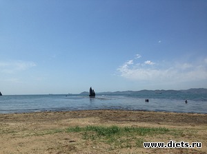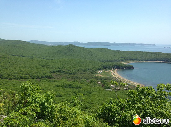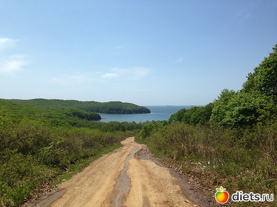 Это практически самое начало пути. Виднеется скала "Палец". В определенное время по косе, можно дойти до пальца пешком. Там очень много трепанга обитает. И мы частенько его ловим и употребляем.
