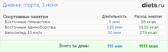 Кстати, сегодня у меня радость - без всяких диет и подсчетов (правда исключила все вредное) минус 900г за неделю. Сама в шоке. Я только на спорт напирала. Вот и все. Довольная, получается и сытая и худею.