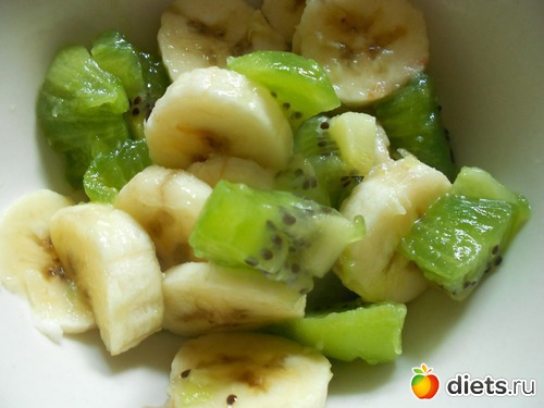 2-й завтрак - кофе, салатик из 1/2 банана и 1 маленького киви (фрукт - порция с кулачок):