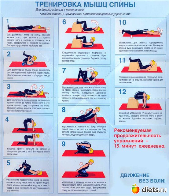 Количество упражнений может быть разным, может изменяться их тяжесть, интенсивность и сами упражнения, важно делать ежедневно. Создав мышечный корсет, вы разгрузите позвоночник.