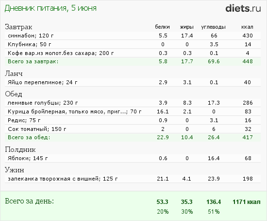 5 июня. Меню