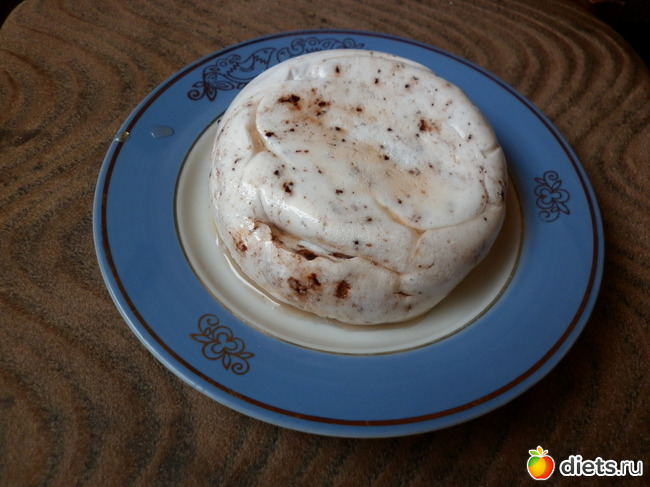 есть только хорошо охлажденным!!! у меня небыло шоколада и я сыпанула немного "Несквика"по вкусу напоминает суфле"Рузанна в шоколаде"или конфеты "птичье молоко"по каллорийности из расчета 70гр-белок и сахар и 50гр молочный шоколад все потянуло на 575кк.