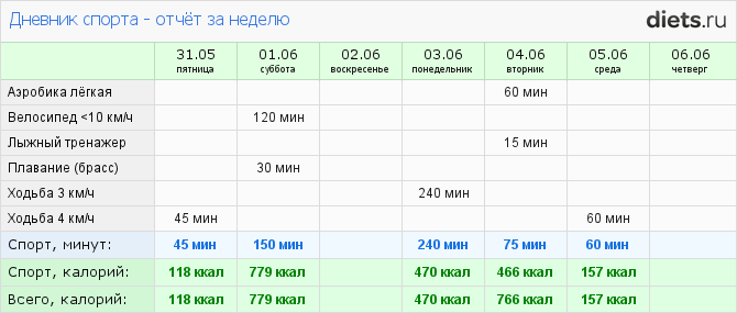 Можно сказать, что основная задача первой недели выполнена: считала каждый день, не пропуская; начала корректировать меню; более интенсивно занялась физ. упражнениями.