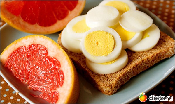 Во время диеты на грейпфрутах и яйцах за день уходит 0.5-1 кг.