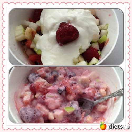 Вкусный и полезный фруктовый салатик на второй завтрак был у меня сегодня)) Калорийность на вполне большую и сытную порцию - 160 ккал.