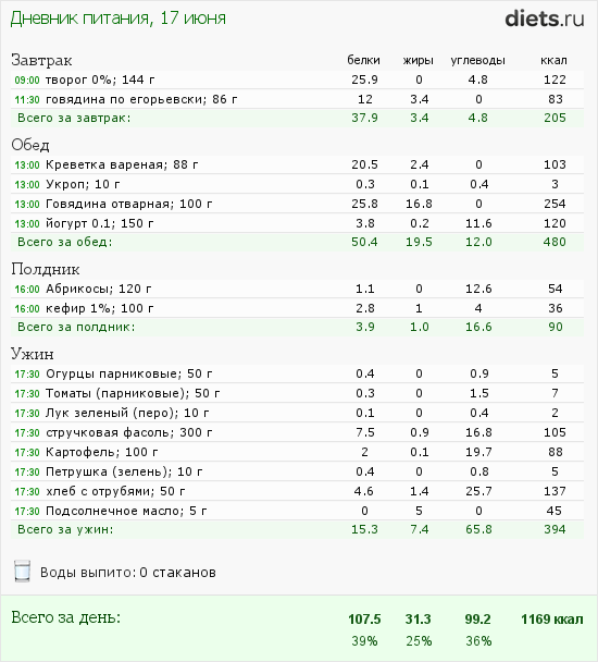 Салат из отварных креветок (100 г), заправленный майонезом и посыпанный укропом; отварная телятина (80-100 г) или говядина; йогурт без наполнителя.