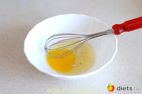 2) В тарелку вбить одно яйцо, немного посолить и хорошо взбить венчиком