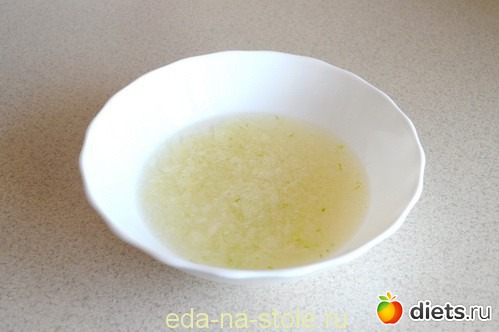 6) Залить его кипяченой (немного остывшей) водой с добавлением 9% уксуса, соли и сахара – по 1 чайной ложке. Через десять минут воду необходимо слить.