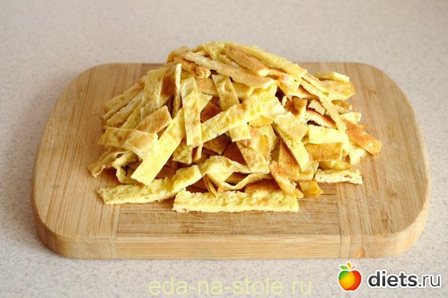 7) Блинчики из яиц аккуратно нарезать тонкой соломкой.