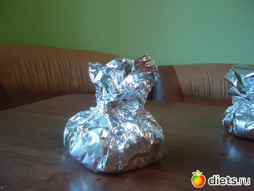 Далее поднимаем края фольги и заворачиваем, получается что то типа узелка.