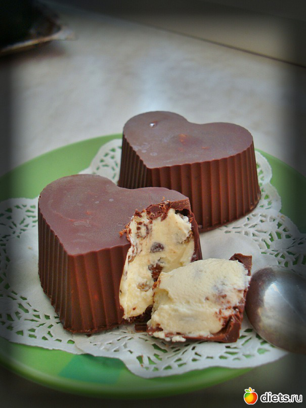 Кисточкой промазать силиконовые формы шоколадом и поставить в морозилку на 5 минут. Взбить творог с сахарной пудрой и чайной ложкой молока или сливок... Читать полностью