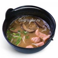 Суп с пшеничной лапшой, лососем и шиитакэ. Вес: 250 - 300 гр. , он самый ккал из всего меню