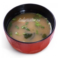Суп из соевой пасты мисо с водорослями. Вес: 150 - 200 гр. это классический, в нем средняя ккал