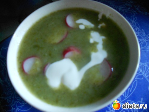 Ужин (в 17 часов - ранний, перед театром) - суп-пюре из редиса и постная свиная отбивная с салатом из перловки с овощами: