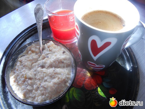 Завтрак - 4-х зерновая каша на молоке (злаки + белок), сок (фрукт), кофе: