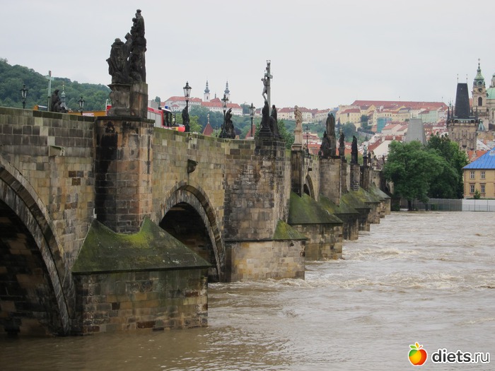 Карлов мост был закрыт все время, что мы были в Праге, хоть вода и спала к концу недели: