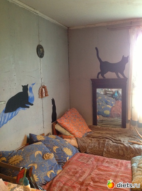 Кошку над зеркалом дочка раскрашивала, немного не те очертания получились...