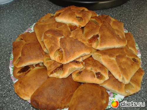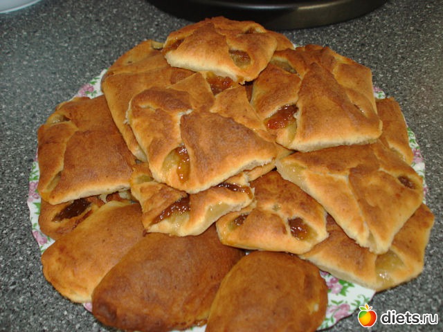 Каждый квадратик посыпать сахаром(это было так в рецепте, но у меня начинка натертое свежее яблоко и сливовое повидло).