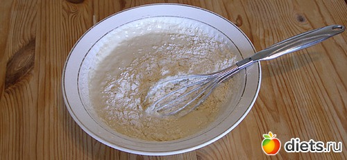 Добавляйте муку, разделив ее на 2 или 3 порции, для того, чтобы было удобно перемешивать.