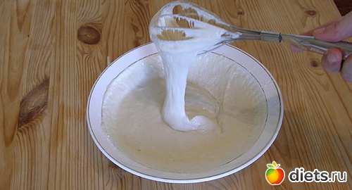 Должна получиться густая масса, которая не стекает с ложки, а сходит с нее тягучей, густой массой.